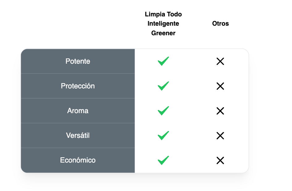A diferencia de otros, Greener piensa por ti, ofreciendo limpieza y desinfección inteligentes en cualquier superficie. Su aroma fresco y protección duradera lo hacen único.