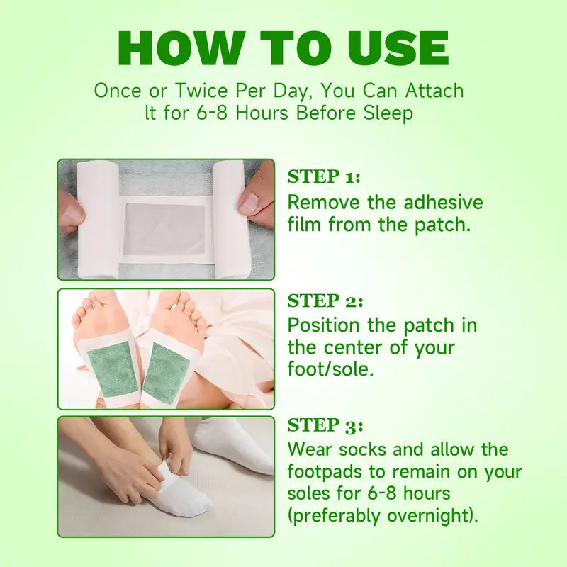 Ingredientes totalmente naturales: los parches para pies están hechos con extractos naturales de plantas como aloe, carbón de bambú y vinagre de bambú, sin irritación. Han beneficiado a una amplia gama de personas, por ejemplo, para pies fríos, hinchazón y dolor de pies, mal aliento, estreñimiento y para quienes trabajan con computadoras. Mejora tu sueño: relaja el cuerpo, te ayuda a conciliar el sueño más rápido, te despierta con más energía y promueve la regeneración celular. Instrucciones de uso: una o dos veces al día, se puede colocar de 6 a 8 horas antes de dormir. Paso 1: Lavar los pies primero para eliminar el sudor. Paso 2: Retirar la película adhesiva del parche. Paso 3: Colocar el parche en el centro del pie/planta. Paso 4: Usar calcetines y dejar las almohadillas en la planta del pie de 6 a 8 horas (preferiblemente toda la noche). Use calcetines durante el día para evitar que se caiganParches profesionales para los piesMás transpirables y efectivos
