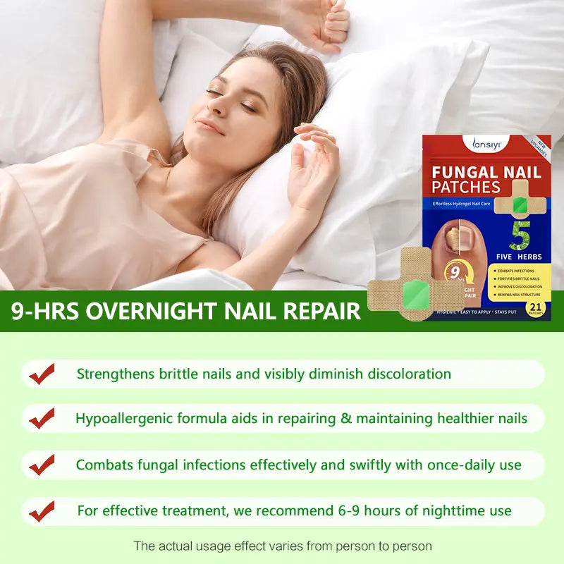 Parches para hongos en las uñas Lansiyi, 21 unidades/caja, para el cuidado de las uñas, con 5 hierbas para tratar hongos y otros problemas, suministros para uñas, kit de cuidado diario, suministros para manicura,